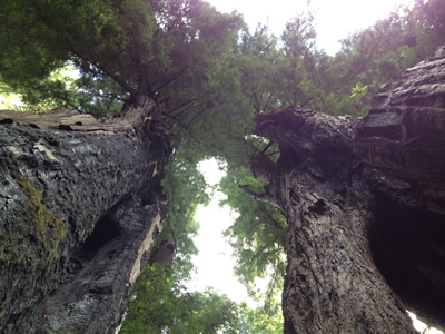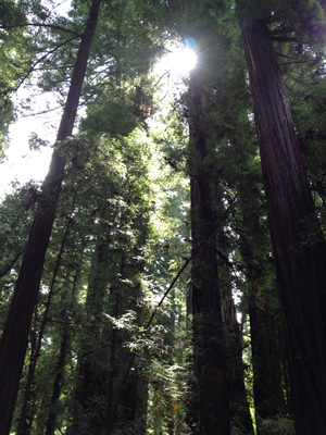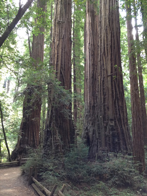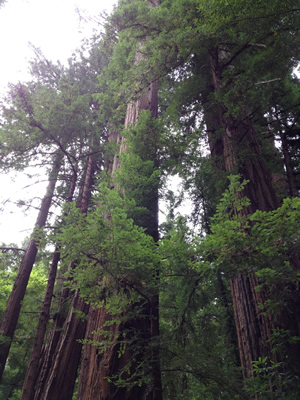 On our seventh and final day on the Pacific Coast Highway in California, we woke early in Santa Cruz, and after a delicious breakfast at our B&B set off on an inland detour. A short drive up into the mountains about twenty miles from the coast took us to Henry Cowell Redwoods State Park. We hiked the loop of the Redwood Grove Trail, and marveled at the size of the Redwood trees. Though not comparable in size to the Redwoods in northern California, some of which are so large it's possible to drive a car through them, the Redwoods at Henry Cowell SP were still tall enough and wide enough to impress me. I've seen big trees in my lifetime, but none nearly this massive. They were beautiful and inspiring.