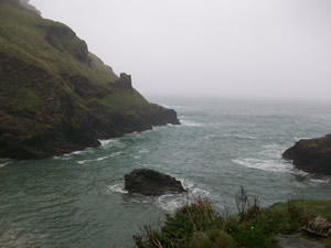 Driving north through Cornwall, the weather steadily began to deteriorate as we made our way to Tintagel. The rain began as we exited the motorway and headed towards the coast, and then the fog rolled in. Rarely have I driven through a mist so dense, setting so close to ground like a curtain of white. As terrible as it was for driving, and uncomfortable as we were walking in it, the weather was absolutely ideal for the destination where we were headed.