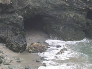 The village of Tintagel is home to Tintagel Castle, the clifftop castle rumored to be the birthplace of King Arthur and the home of the Kings of Cornwall. Mystery swirls about the romantic ruins perched on a rocky headland looming out over the crashing waves of the Cornish sea. Access to the castle was via two steep staircases clinging to the cliffside, and was well worth the slick and difficult climb for the exhilarating view of the dramatic coastline. You can watch the cold, steely waves of the sea churn and splash into Merlin’s Cave far below.
