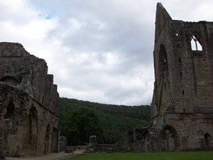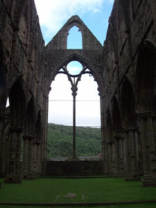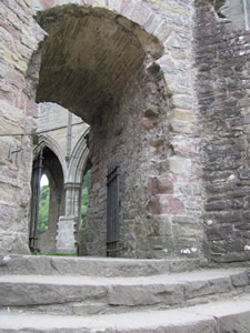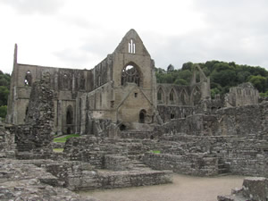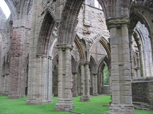 By the 14th century Tintern was the richest abbey in Wales, but along with all of the other monasteries, it was dissolved by King Henry VIII in 1536. “Its skeletal ruins are now roofless and exposed, the soaring arches and windows giving them a poignant grace and beauty. Most of the external walls of the 250 foot long, 150 foot wide church still stand, along with the exquisite window tracery and outlines of the sacristy, chapter house, and dining hall. The daylight that floods through the roofless ruins highlights the Gothic decorated arches—in those days a bold departure from Cistercian simplicity.”